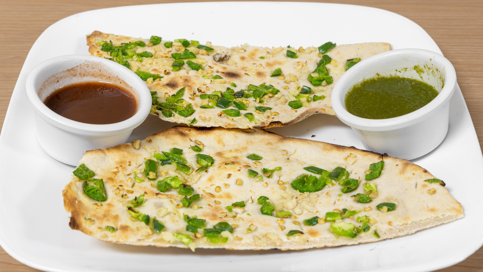 8 Garlic Naan bread topped with garlic & Cilantro.